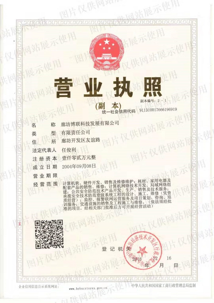 廊坊博聯(lián)科技發(fā)展有限公司是以監(jiān)控報(bào)警器材的研發(fā)、生產(chǎn)、銷售、施工為一體的高新技術(shù)企業(yè),公司成立于2004年,主要從事智能交通(ITS)、高清治安卡口、高清電子警察、電力變壓器安防信息系統(tǒng)的研發(fā)、生產(chǎn)、施工等工作,長期專注于電力變壓器安防信息系統(tǒng)平臺(tái)及解決方案的研發(fā)與運(yùn)營。